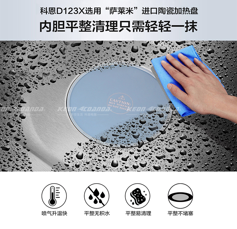 科恩智能蒸烤消一體集成灶的蒸烤箱通過“薩萊米”陶瓷加熱盤產生蒸汽,并滲入食物中來使食材熟透,蒸烤箱底部有一個光滑平整的加熱盤,隱形導流管將外置水箱中的水引流至加熱盤內,加熱盤不斷升溫,到一定溫度是,盤內的水就會蒸發(fā)成水蒸汽,蒸汽在箱內彌漫,滲入食物中。蒸箱、烤箱作為常用的家電,被嵌入集成灶箱體,不僅僅能夠節(jié)省空間,更能夠滿足不同用戶的不同烹飪需求!