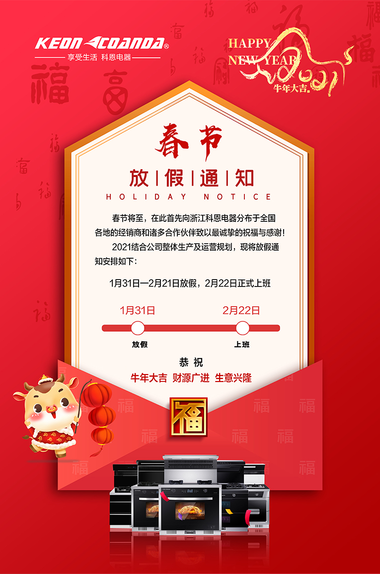 浙江科恩電器有限公司2021年春節放假通知