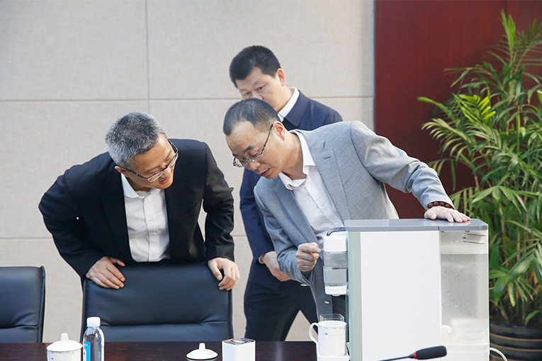 徐書記一行先后參觀科恩電器辦公環(huán)境以及大型現(xiàn)代化廠區(qū),認(rèn)真聽取科恩的發(fā)展歷程、研發(fā)隊伍建設(shè)、管理制度、黨建文化等情況介紹,并對公司管理、發(fā)展、品牌以及產(chǎn)品的高端定位予以肯定,重點對新產(chǎn)品研發(fā)項目科恩第四代移動水吧--“泡茶凈飲一體機(jī)”產(chǎn)品進(jìn)行了詳細(xì)了解,無空間、無水源限制的科恩新款移動水吧,一舉顛覆了用戶對于傳統(tǒng)凈水設(shè)備的印象,引領(lǐng)行業(yè)產(chǎn)品革新,受到徐書記一行的高度認(rèn)可,并提出做強做大的要求!