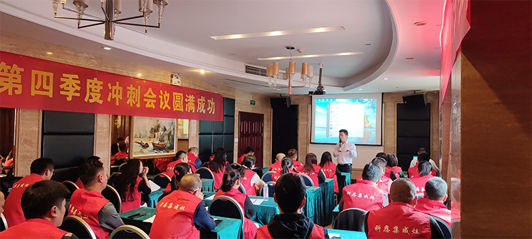 會議開始,科恩江西區域負責人代表公司團隊真誠感謝江西區域經銷商對科恩的信任與支持,感恩每個門店三季度的付出,同時總結回顧了三季度營銷工作,部署落實第四季度重點工作,精準營銷,效率制勝!
