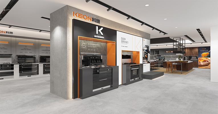 終端形象作為品牌的“臉面”,承載著企業形象的大部分內容,終端的視覺環境、空間、陳列環境都能直接影響到消費者對于其品牌形象價值的認知,科恩集成灶建立全新的視覺形象,是其品牌發展中的重要一步,也為其與消費者更加深層的溝通建立了橋梁。