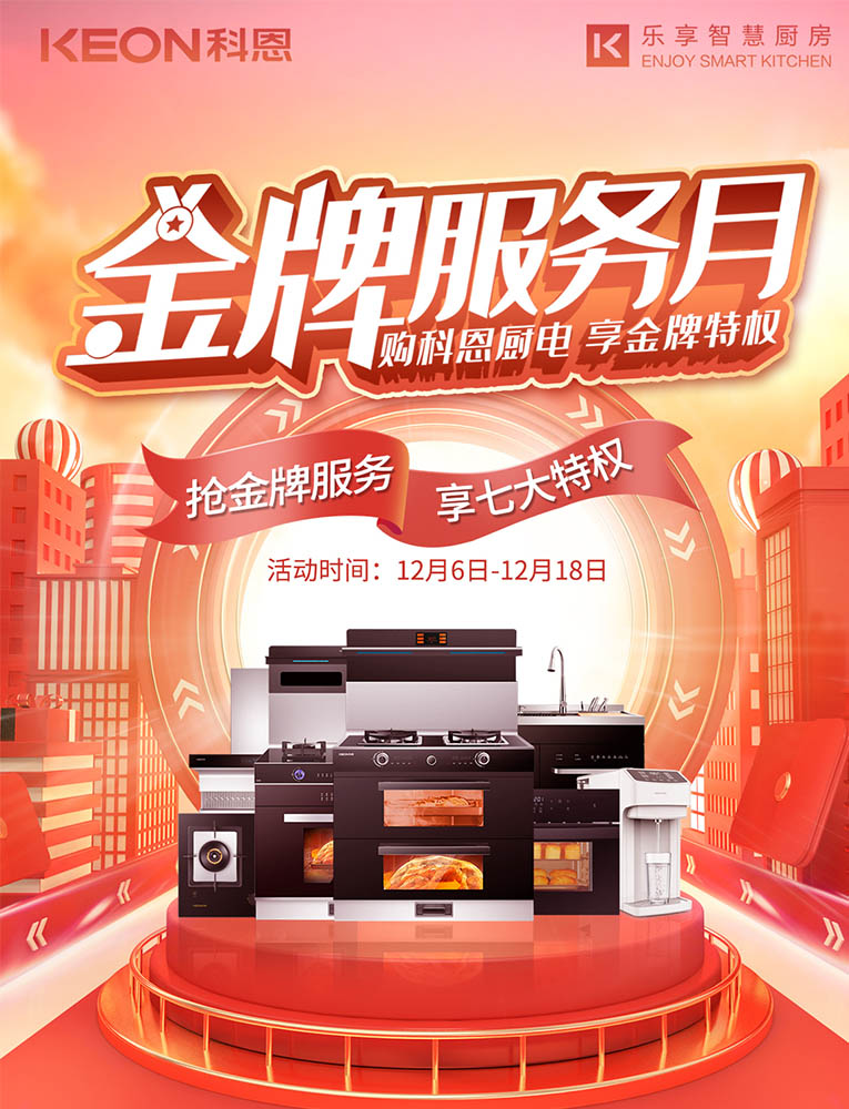 購科恩廚電,享金牌特權!十大品牌科恩集成灶金牌服務月火熱來襲!