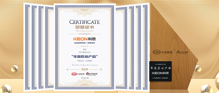 會議揭曉了集成灶行業(yè)2021年度在品牌發(fā)展、產(chǎn)品創(chuàng)新等方面優(yōu)秀的品牌榜單。浙江科恩電器有限公司在此次峰會上榮獲“2021集成灶行業(yè)十大領(lǐng)導(dǎo)力品牌”,科恩S400蒸烤消一體集成灶榮獲“2021集成灶行業(yè)年度匠心產(chǎn)品”。雙項殊榮,實至名歸!