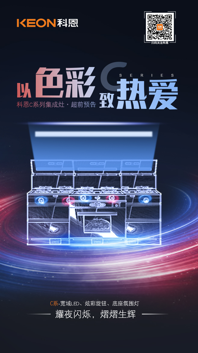 在這個世界上最美好的地方除了詩和遠方,還有家里的廚房,TA承載了我們對美好幸福生活的向往,華燈初上,步入廚房,開啟旋鈕,剎那間,耀夜閃爍,氤氤燈下,一起為愛洗手做羹湯...這才是生活最美好的模樣!愛要永葆新鮮,更要擁有超多儀式感,科恩C系集成灶,重新定義廚房美學(xué)震撼,構(gòu)筑視覺與觸覺的全新想象!