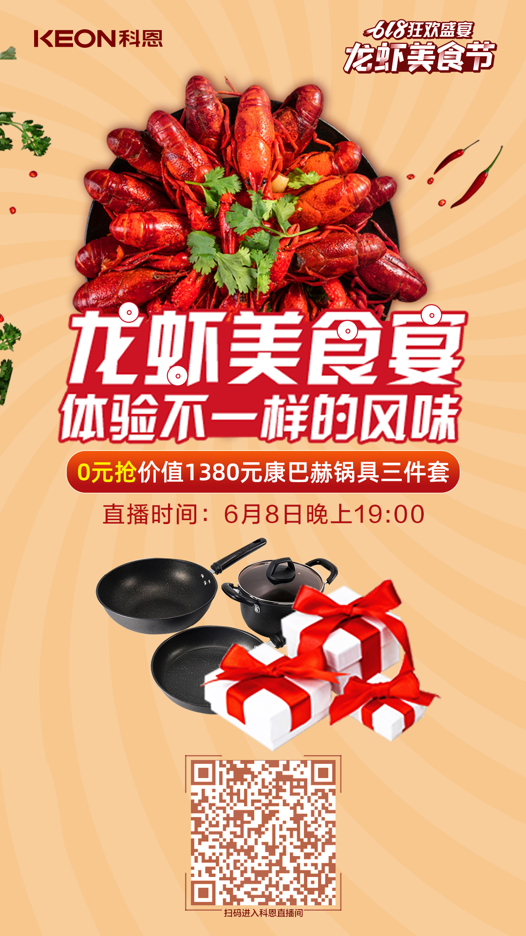 TA來了!TA來了!TA來了!618狂歡盛宴科恩龍蝦美食節(jié)——龍蝦美食宴線上直播終于來了,TA帶著傳統(tǒng)和創(chuàng)新的美味來了,TA帶著誠意滿滿的福利來了,6月8日19點(diǎn),來科恩直播間,我家的科粉,我來寵!!!