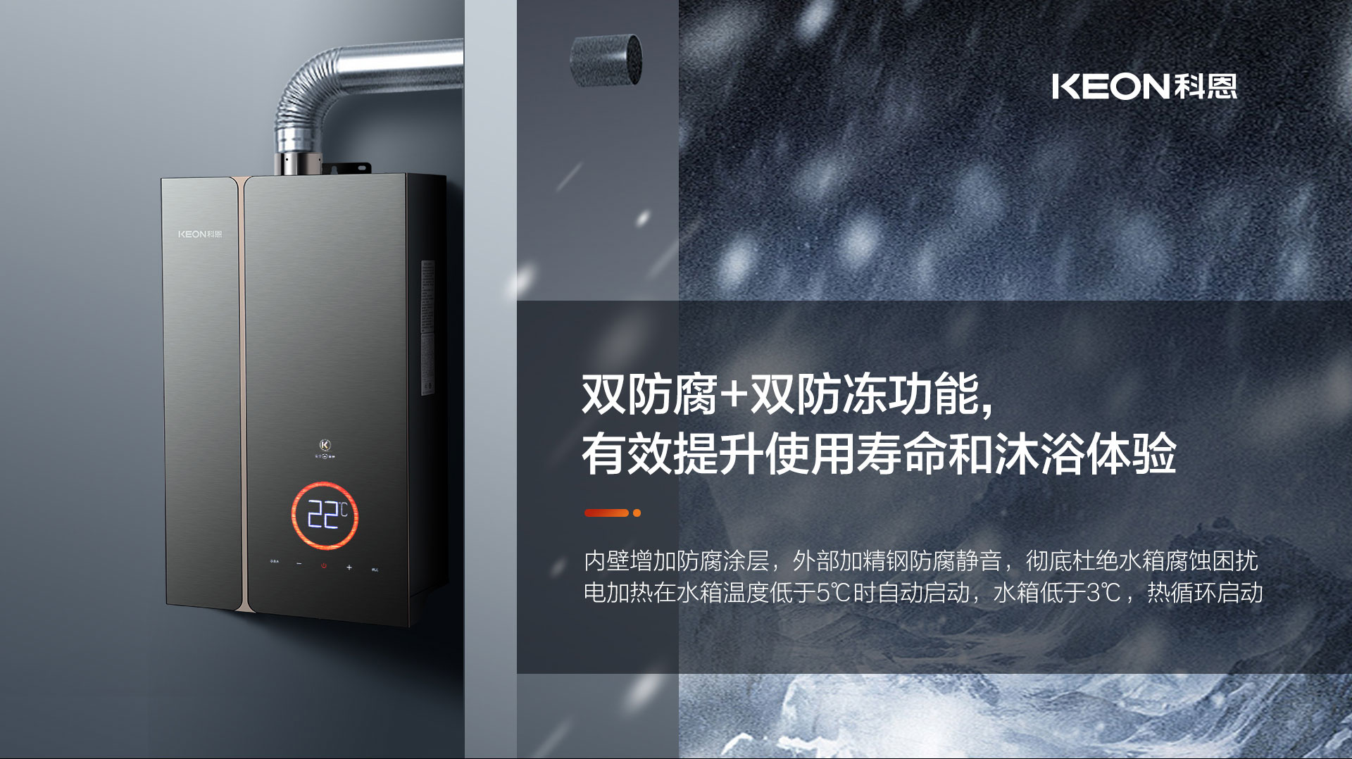 冬天想要洗個舒舒服服的熱水澡,卻總被突如其來的冷水激到,大夏天想洗掉一身黏膩,卻總被不適宜的熱水燙到!涂抹沐浴露關掉花灑,再次打開卻是冷水,本該是回家后卸下疲憊的身心放松,卻總被忽冷忽熱的洗澡水擾了興致!科恩JSQ34-18Q6零冷水燃氣熱水器,精準控溫,帶來持久恒溫,中途開機零冷水,給您和家人無時無刻的恒溫陪伴!