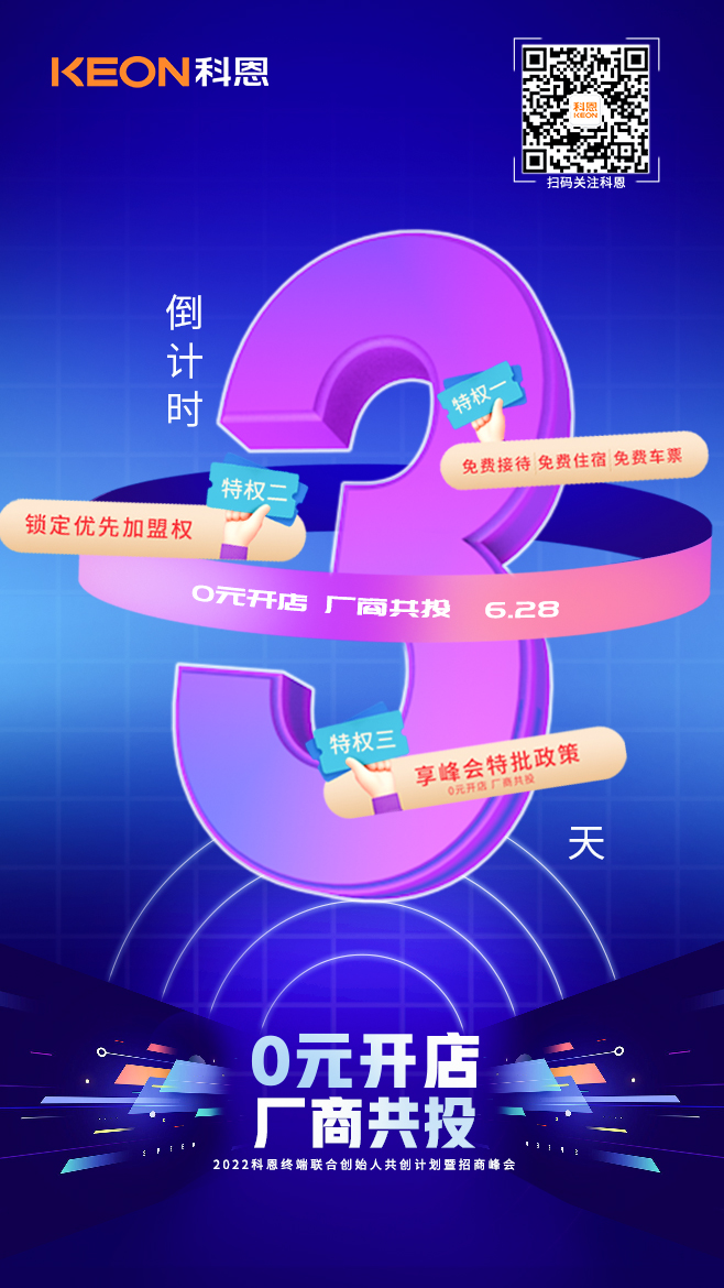6月28日2022科恩終端聯合創始人共創計劃暨招商峰會將在廚具之都嵊州隆重舉辦,本次峰會將以“0元開店,廠商共投”為主題,邀請來自全國各地的行業精英、投資大佬匯聚一堂,共同探討廚電行業發展趨勢,解鎖集成灶行業新賽道趨勢密碼,多維驗證科恩集團軟硬厚實力,屆時,將為各位來賓解讀限時政策內容,為各位投資人提供一個潛力無限,共創霸業的優秀共創平臺。