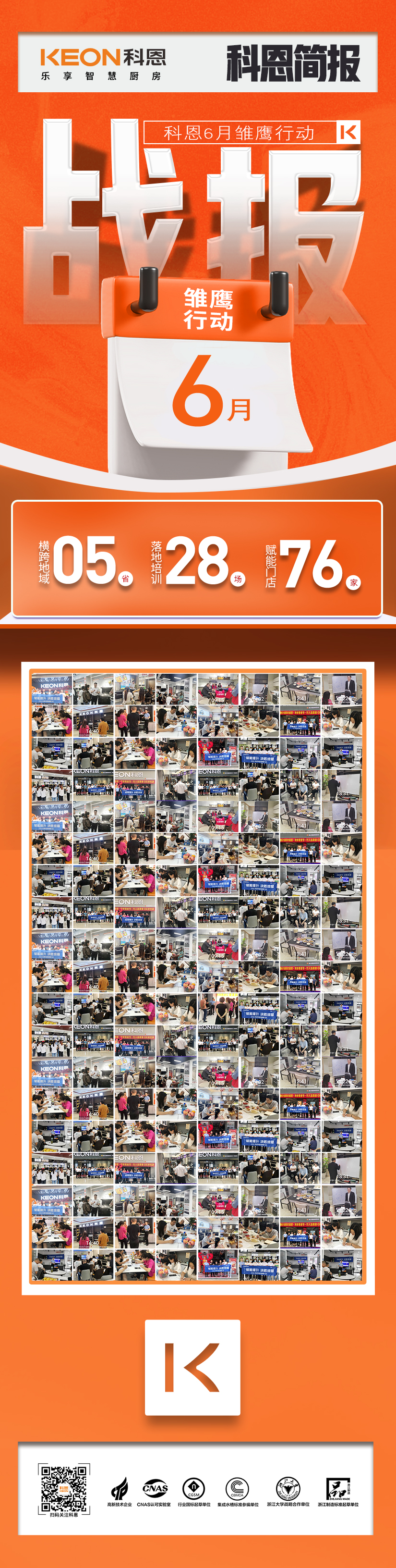 受大環境影響,整個市場格局呈低位運行,但淡季往往承載著更多的機會與潛力,誰能充分做活淡季市場,誰就能在旺季收割更大市場,淡季不淡,旺季更旺!沒有淡季的市場,只有淡季的思想,盛夏六月,科恩人不畏酷暑,奮勇爭先,一如既往奮斗在市場第一線:熱火朝天的終端幫扶、落地爆破,花樣繁多的全渠道聯誼、雙線促銷活動,豐富多彩的美食拓客、社交新零售活動,獨領行業風騷,成為今夏廚電市場最亮風景線!