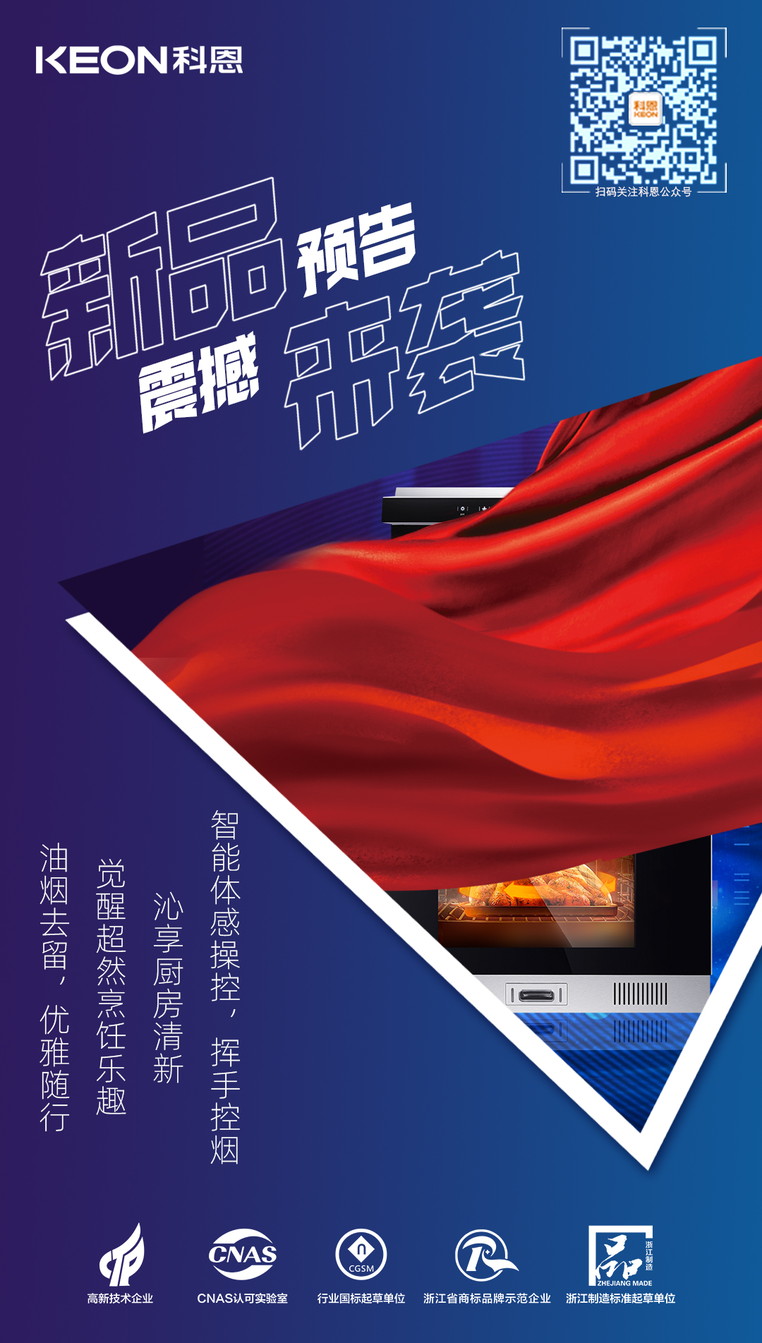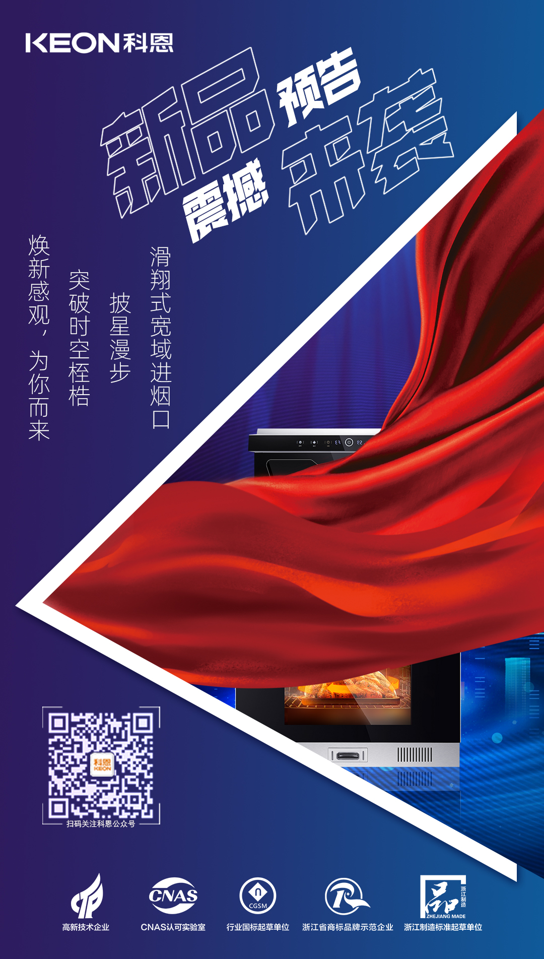 科恩集成灶新品聚焦|D520ZK蒸烤一體集成灶,征程廚房星際云端