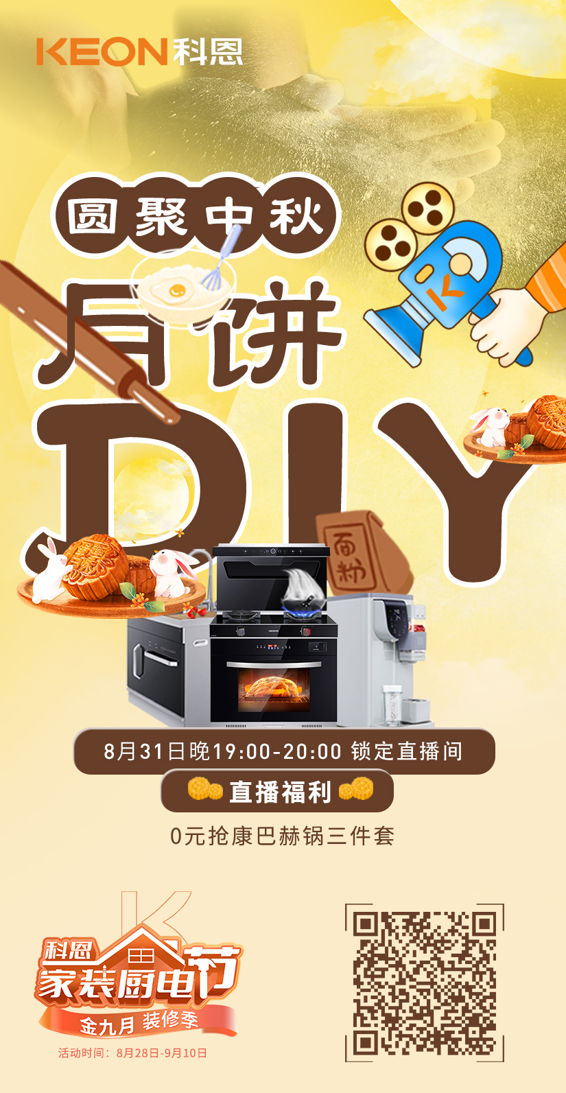 講真,吃久了外面買的月餅,總有那么一刻想要自己做來試試,而看到種種月餅DIY教程,呃……似乎難度……有點(diǎn)大!!!!于是!科恩集成灶就貼心的在科恩家裝廚電節(jié)活動(dòng)期間安排了【圓聚中秋,月餅DIY】為主題的直播活動(dòng)!手把手教你用科恩集成灶做高顏值的中秋月餅,而且據(jù)說直播現(xiàn)場(chǎng)還有0元搶康巴赫鍋三件套的壕氣福利!