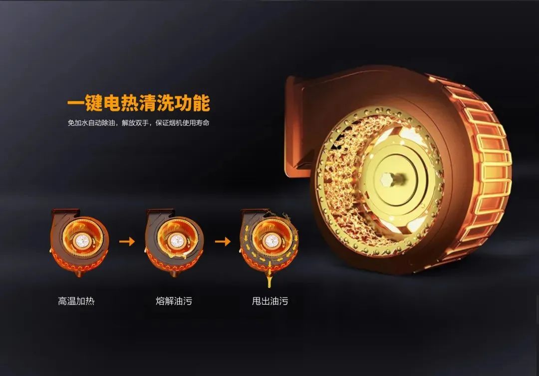 科恩免清洗煙機標配智旋洗,高溫電加熱,有效熔化風柜內壁和葉輪上的部分油垢,再通過風輪的離心力將油污甩到室外和過濾到油杯,從而完成清洗全過程,但即使這樣也無法解決風輪長年累月因油脂油污附著負荷工作而造成的吸力下降,吸煙效果變差,清洗打理困難,甚至煙機抖動和安全等諸多問題......