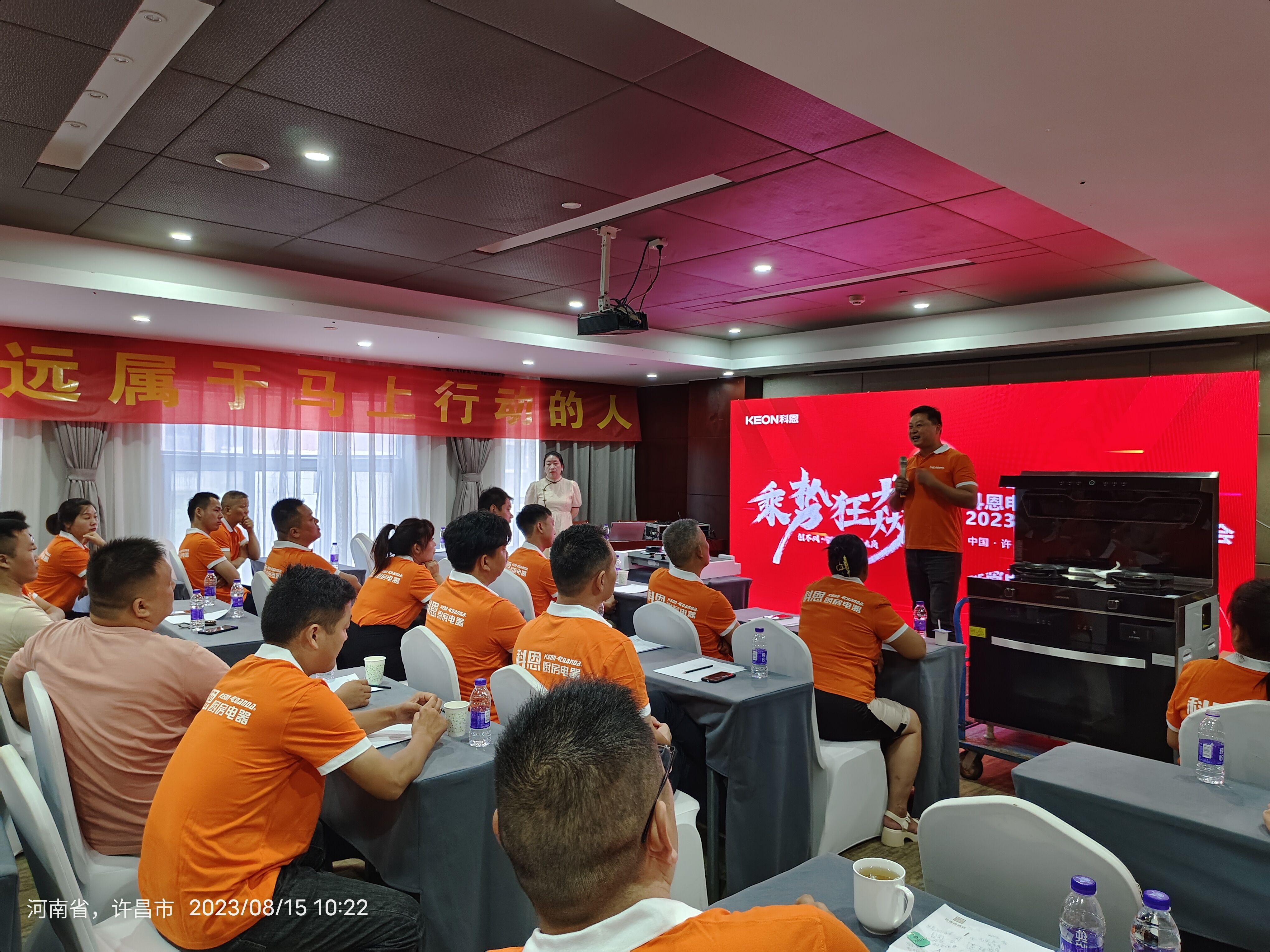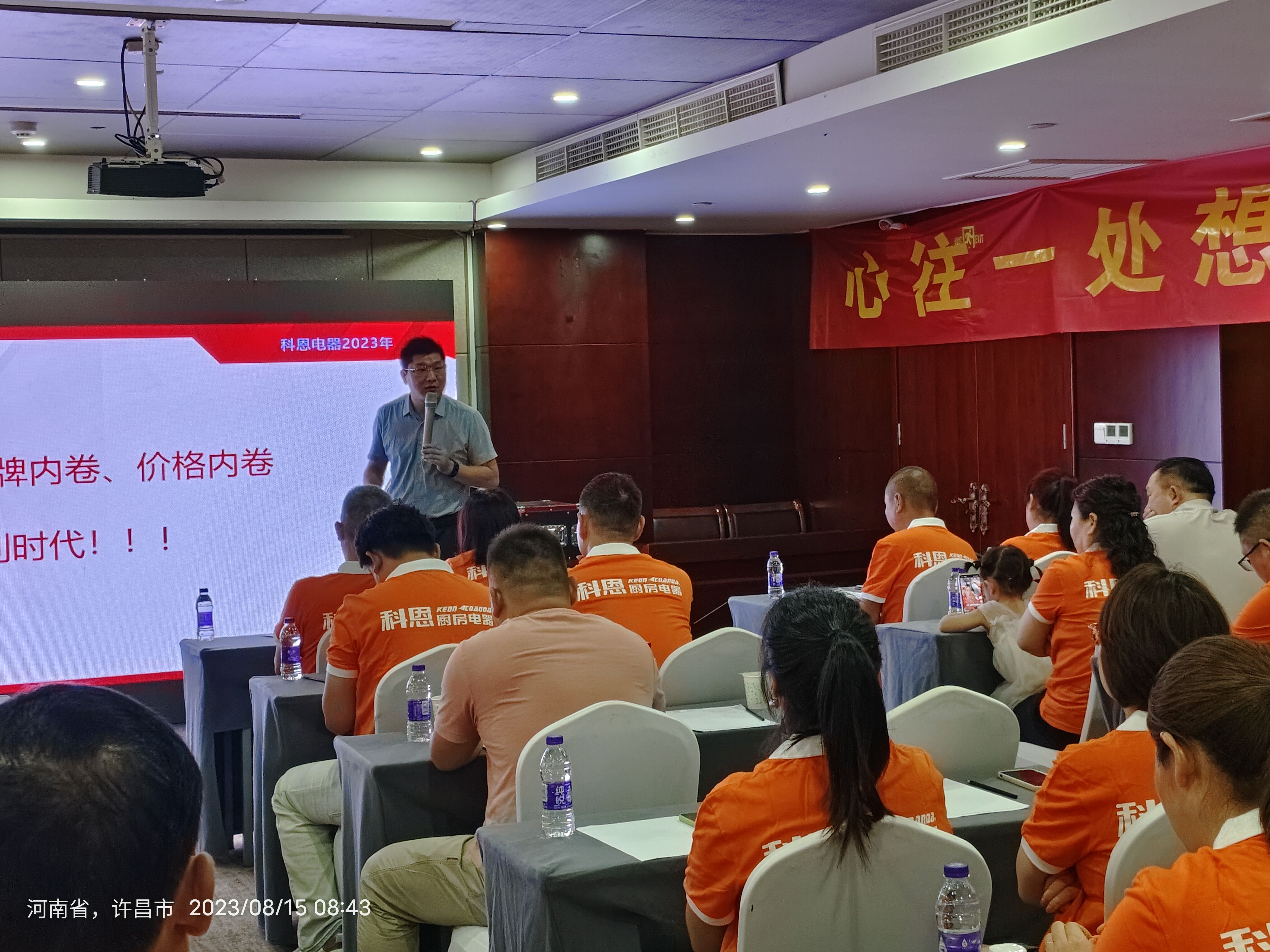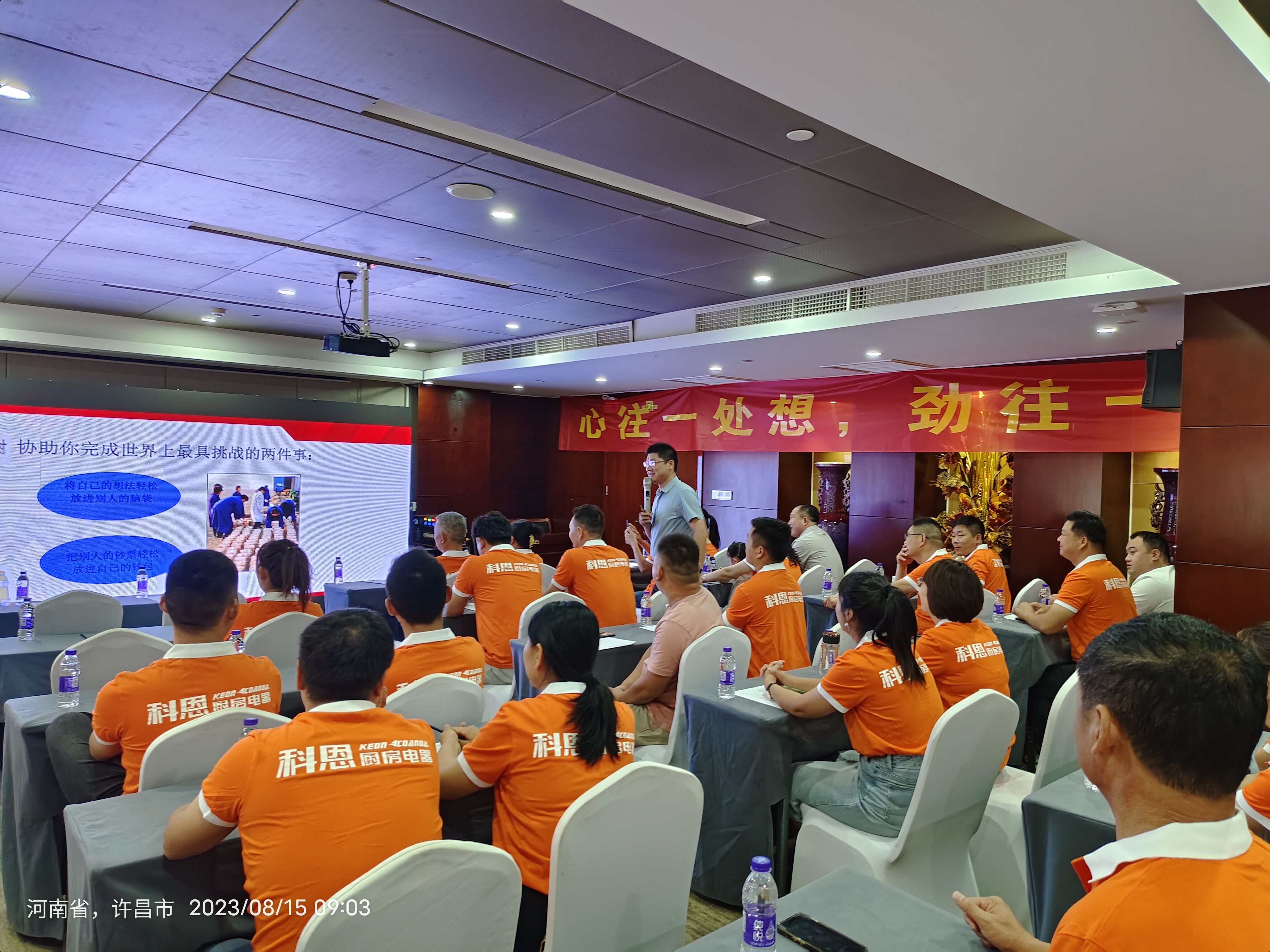 以客戶為中心,以幫扶客戶發(fā)展為己任,為了讓科恩客戶更了解廚電行業(yè)發(fā)展趨勢(shì),幫助經(jīng)銷商轉(zhuǎn)型升級(jí)。2023年8月14日,科恩河南區(qū)域在許昌召開(kāi)了經(jīng)銷商培訓(xùn)會(huì)。本次培訓(xùn)為期兩天,旨在為經(jīng)銷商樹(shù)立明確運(yùn)營(yíng)方向,為金九銀十打下扎實(shí)基礎(chǔ)!