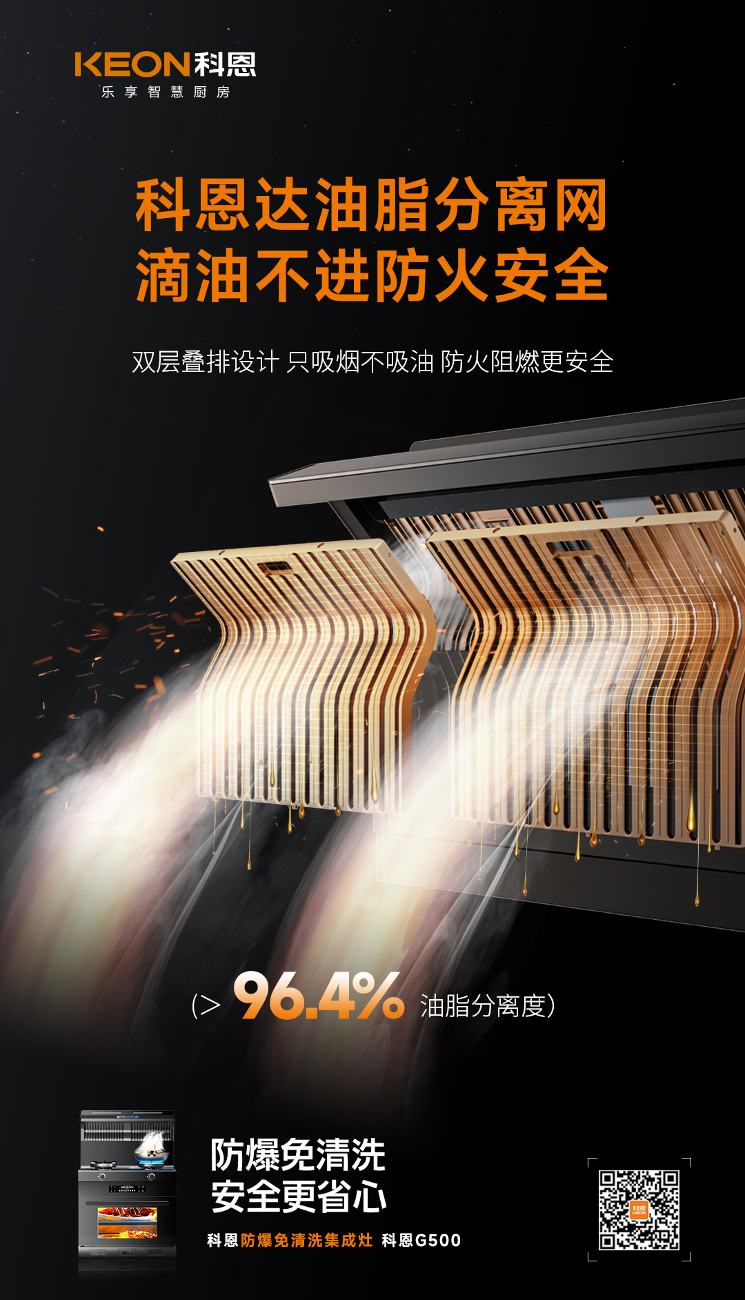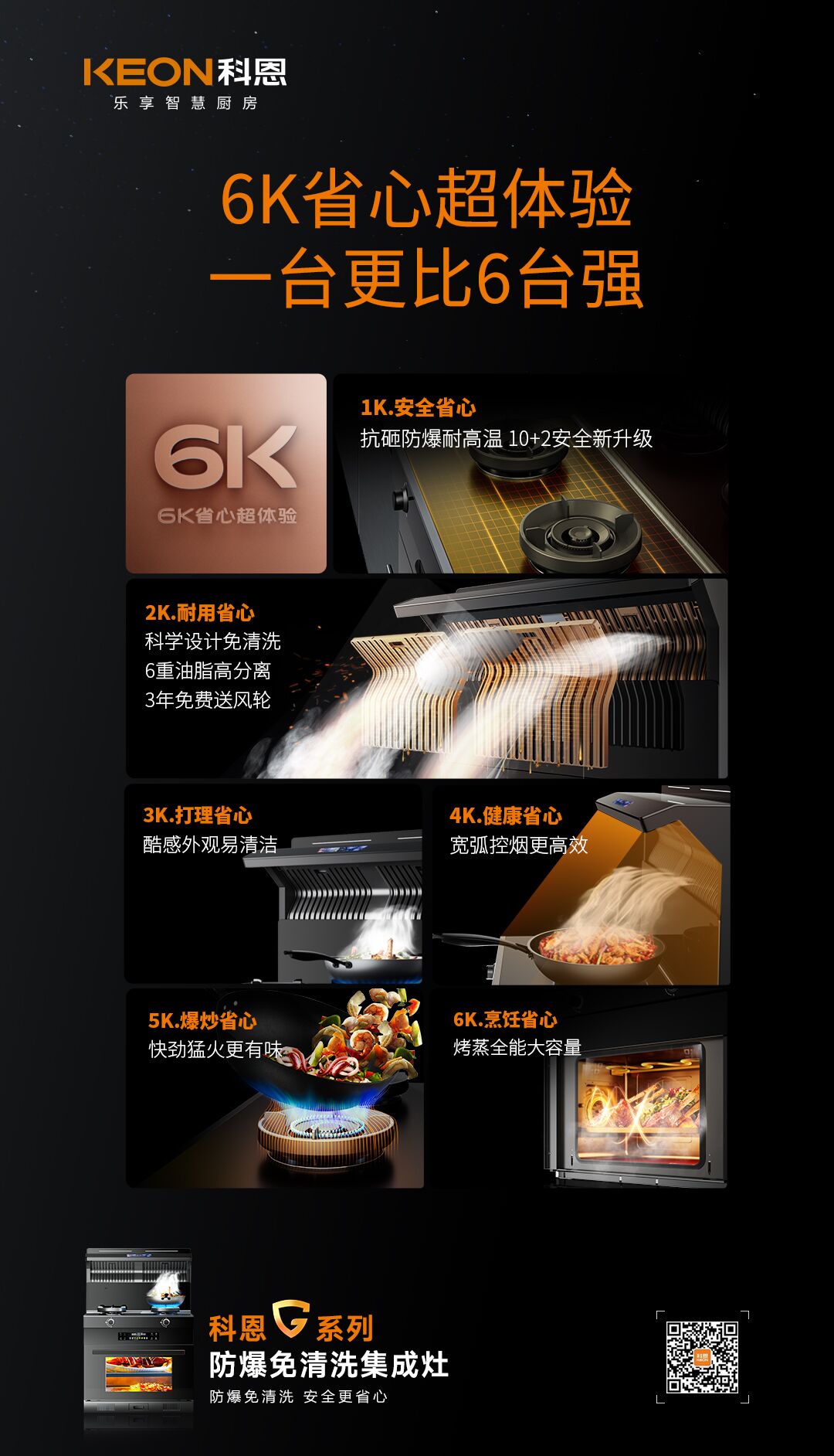 怎么樣的集成灶才能更完美匹配用戶的需求。2023年,科恩研發(fā)了G系列防爆免清洗集成灶,6K省心超體驗(yàn),完美適配消費(fèi)者需求!