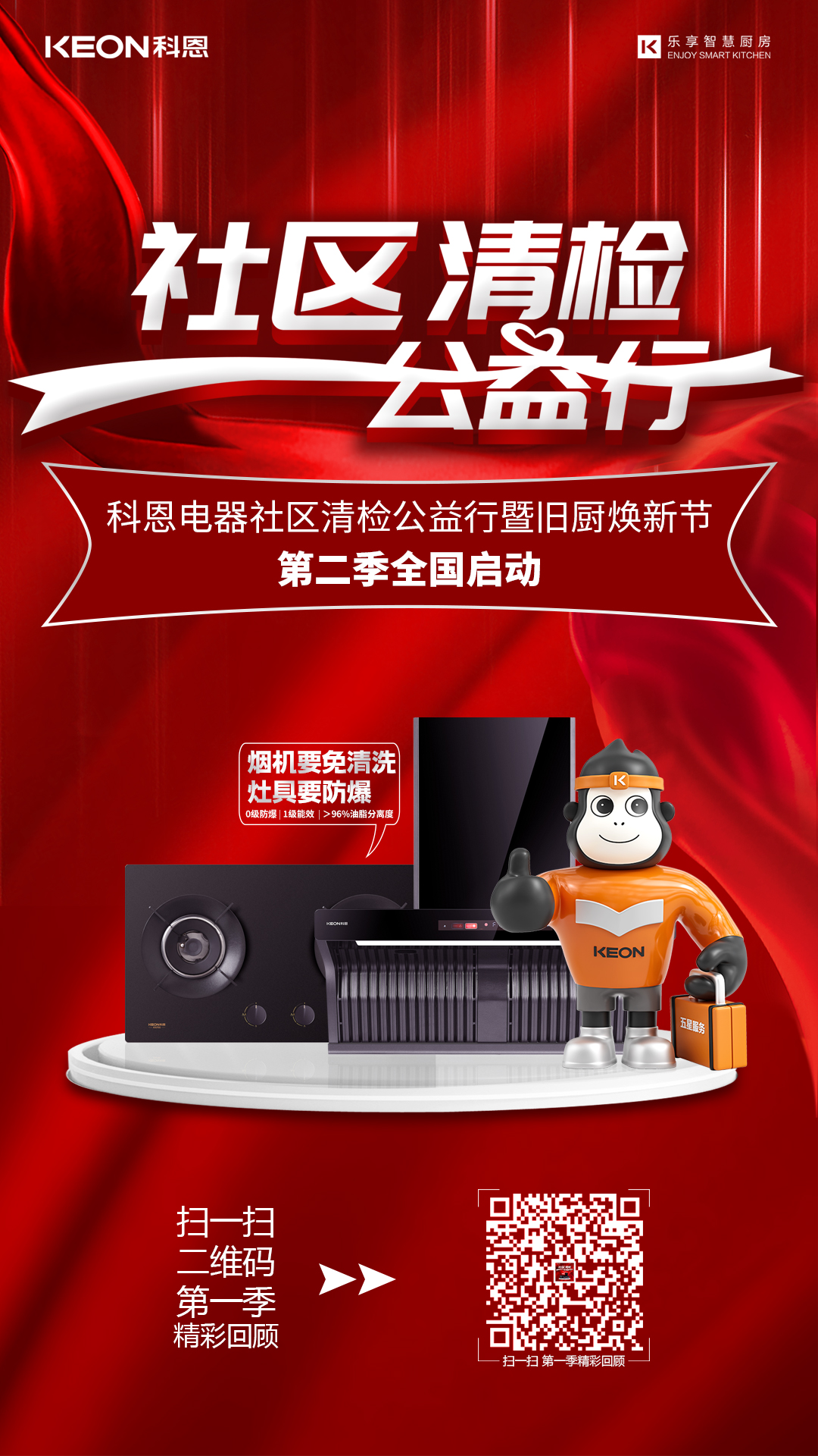 2023年,廚電行業(yè)面臨嚴(yán)酷挑戰(zhàn),怎么結(jié)合當(dāng)下市場發(fā)展情況撬動(dòng)新增量是企業(yè)需要思考的問題。科恩緊跟國家政策,深入開展家電以舊換新政策,以“社區(qū)清檢公益行”為主題深入千家萬戶。