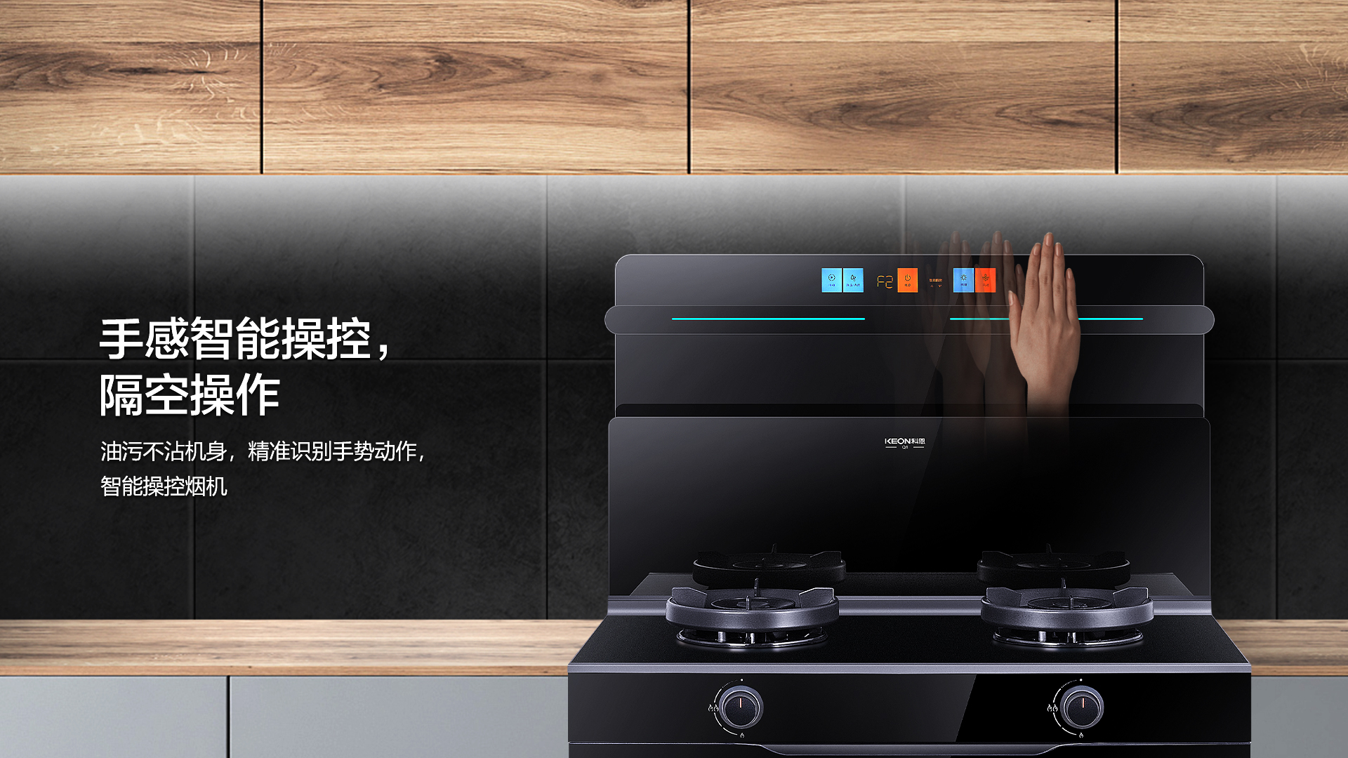 同時,還貼心設(shè)置體感功能,揮手即可操控集成灶,避免了面板都是手指油污的尷尬。