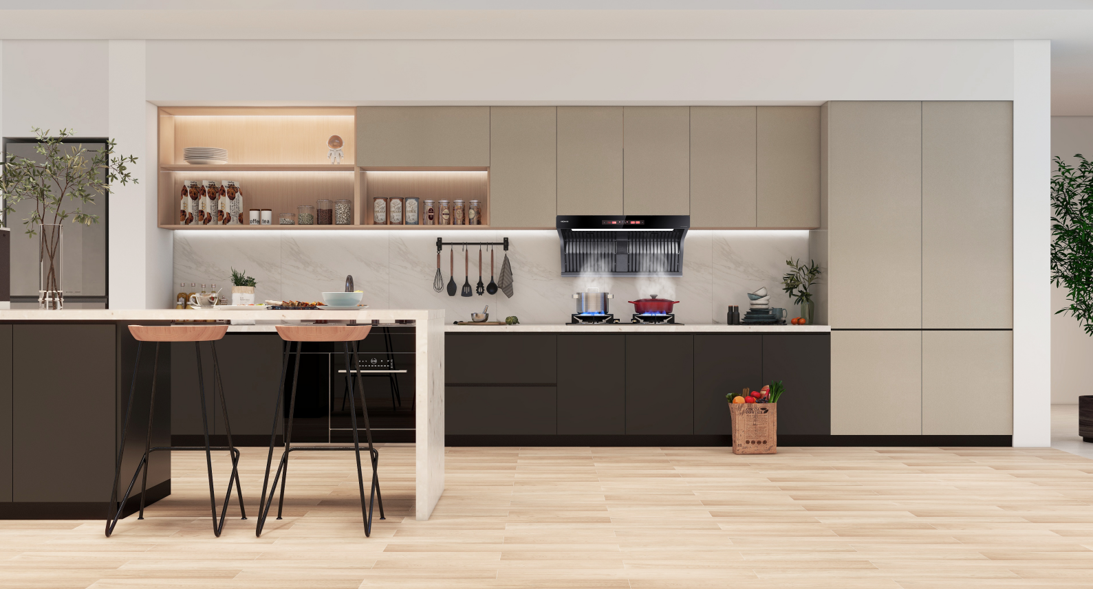 但中式烹飪重油,油煙問(wèn)題不容忽視,如何改善油煙難題,讓開(kāi)放式廚房步入千家萬(wàn)戶(hù)。科恩解決中式廚房油煙難題,讓開(kāi)放式廚房不再是夢(mèng)想。