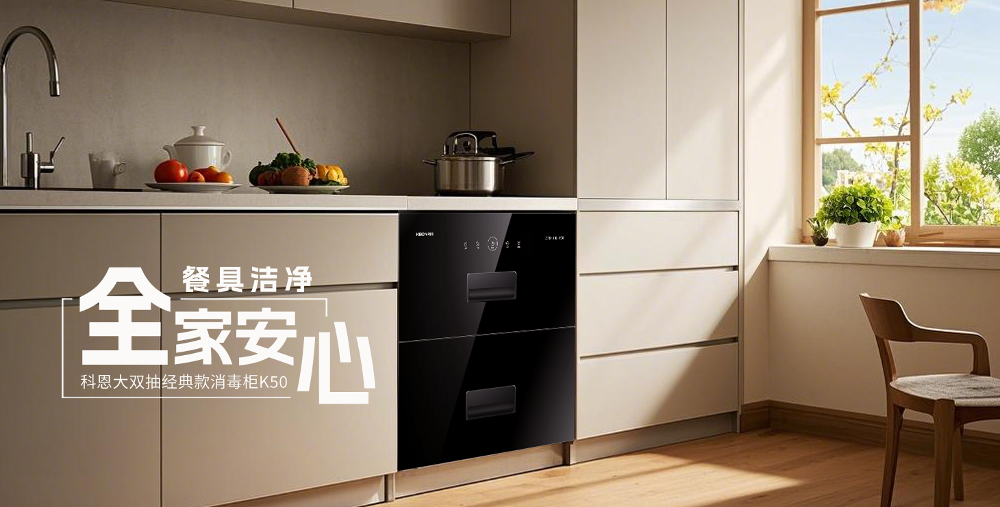 回南天+雨季的雙重暴擊,濕度拉滿警報(bào),剛洗的玻璃杯凝滿水珠,木筷三天冒霉斑,連不銹鋼勺都裹上了一層黏膩。當(dāng)廚房淪為”返潮重災(zāi)區(qū)“,普通消毒柜?治標(biāo)不治本,刀叉縫里的黑斑,奶瓶口的殘留,在你看不見的角落瘋狂繁殖。科恩藍(lán)盾衛(wèi)士系列消毒柜重磅來襲,K50簡約款,K51尊享款,K52時(shí)尚款三款消毒柜供你選擇,消烘存三體聯(lián)動(dòng),讓細(xì)菌無處遁形。