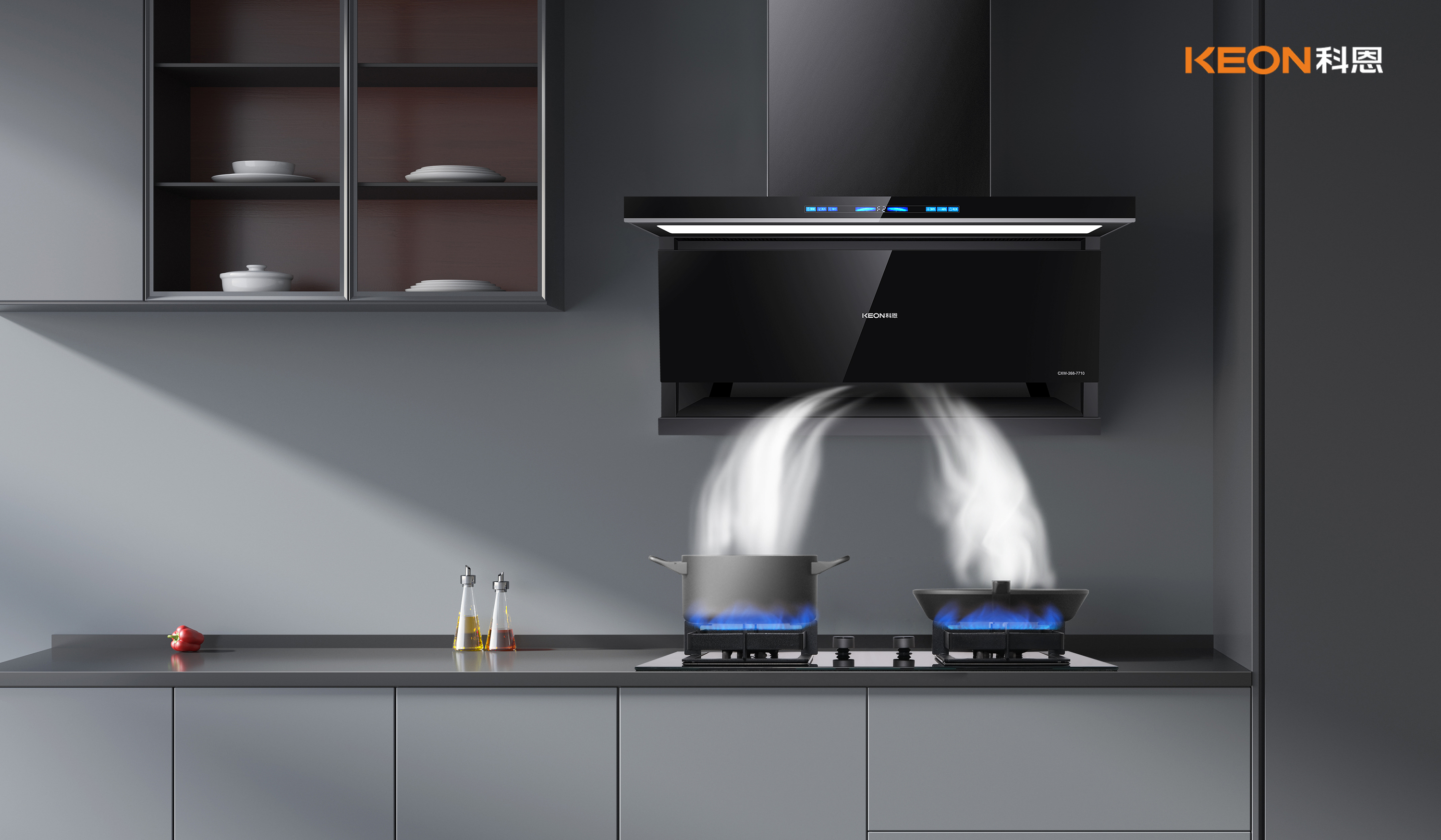 超薄平嵌,煥新無界。廚房煥新怕麻煩?舊柜改造費心力。科恩仰望7710打破局限,4cm超薄操控臺輕盈嵌入,櫥柜零改動,新裝舊換皆從容,鉆石切割背板盡顯硬朗格調(diào),平板設計適配各式廚房風格。