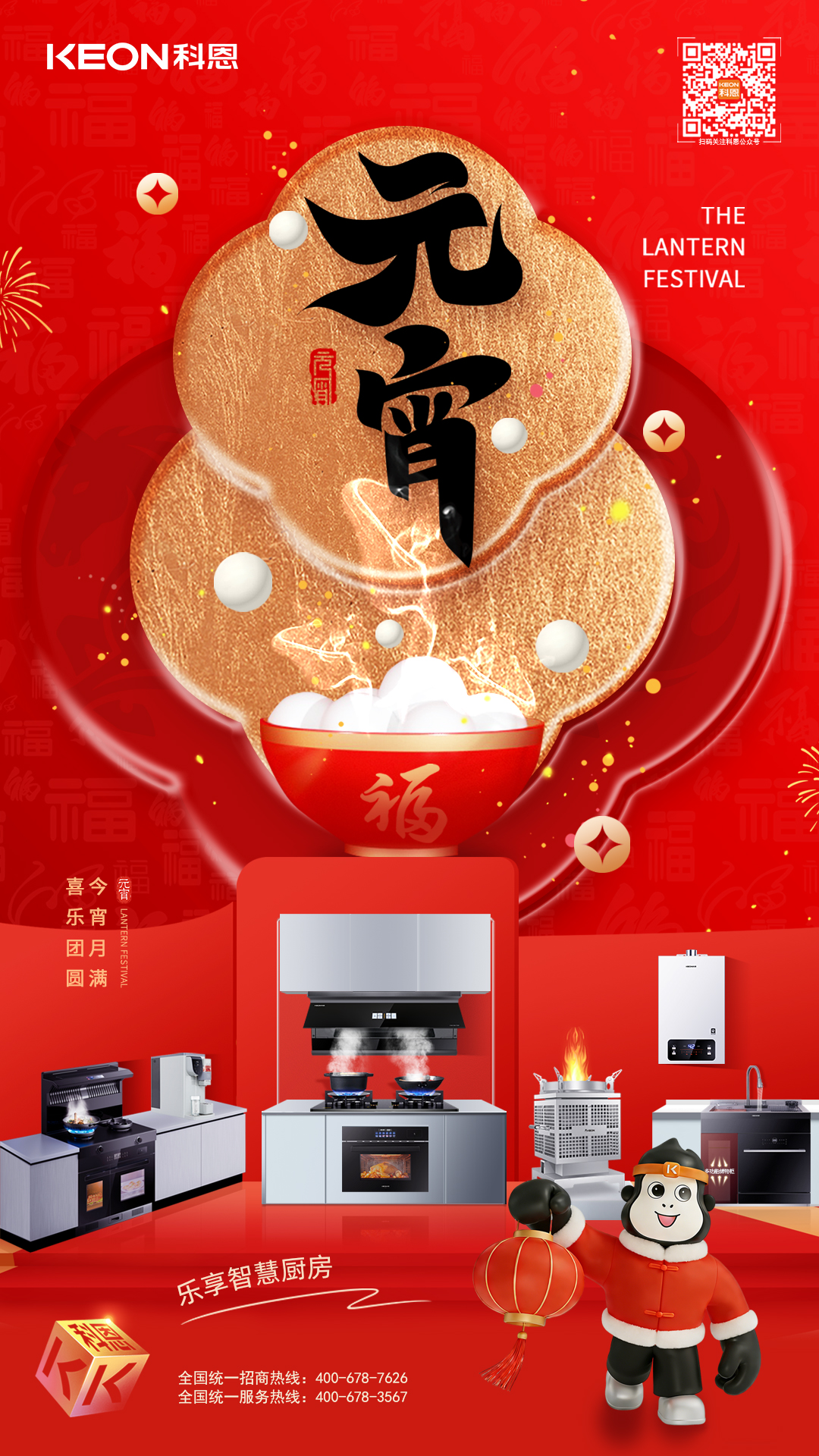 從無煙烹飪到恒溫熱水,科恩廚電以科技賦能生活,用細節守護團圓。這個元宵,打造健康、安全、舒適的廚房環境,讓你在煙火繚繞中自由呼吸,在美味佳肴中品味團圓,共度圓滿元宵!