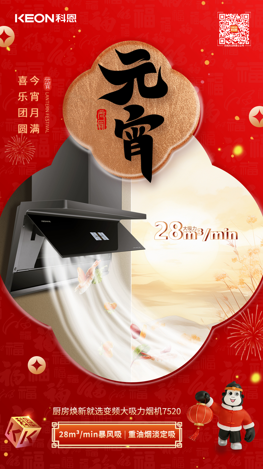 正月十五元宵至,花燈映月慶團圓。廚房作為年味聚集地,此刻正上演著煎炒烹炸的熱鬧景象,湯圓的甜香、菜肴的鮮香交織成幸福的味道。但油煙彌漫、火候難控等煩惱,往往沖淡烹飪愉悅??贫鲝N電以科技賦能,讓無煙健康與美味團圓兼得,讓每個家庭都能自由呼吸間,暢享元宵盛宴。