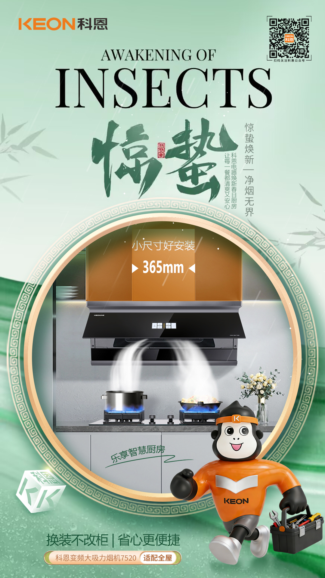 春雷啟驚蟄,煥廚正當時,科恩大吸力煙機7520,以巧裝破局,以強吸凈味,以智能省心,一灶春風,一室清新,讓廚房告別油煙困擾,讓烹飪回歸自在從容。驚蟄煥新,選科恩7520,凈享健康無煙,悅啟春日美好廚居生活!
