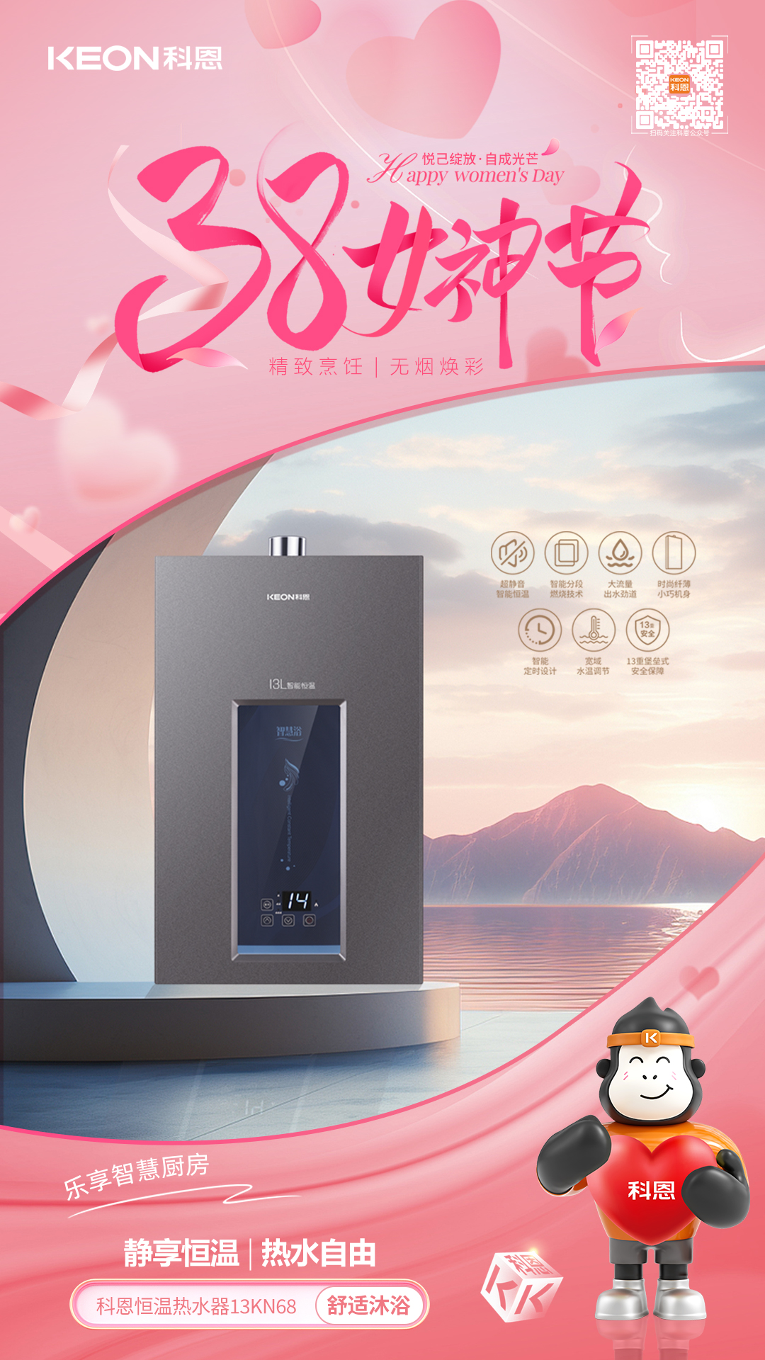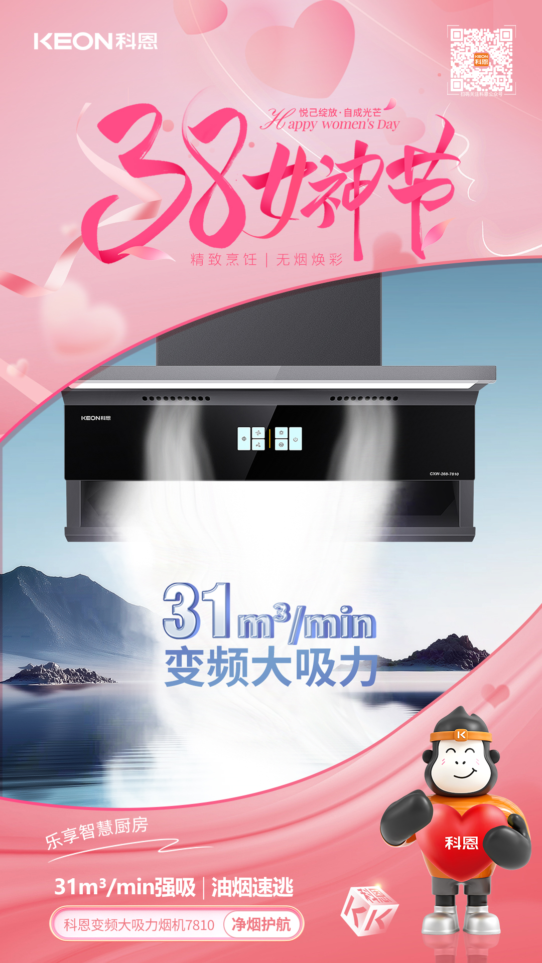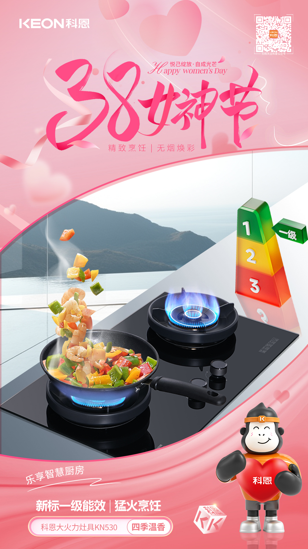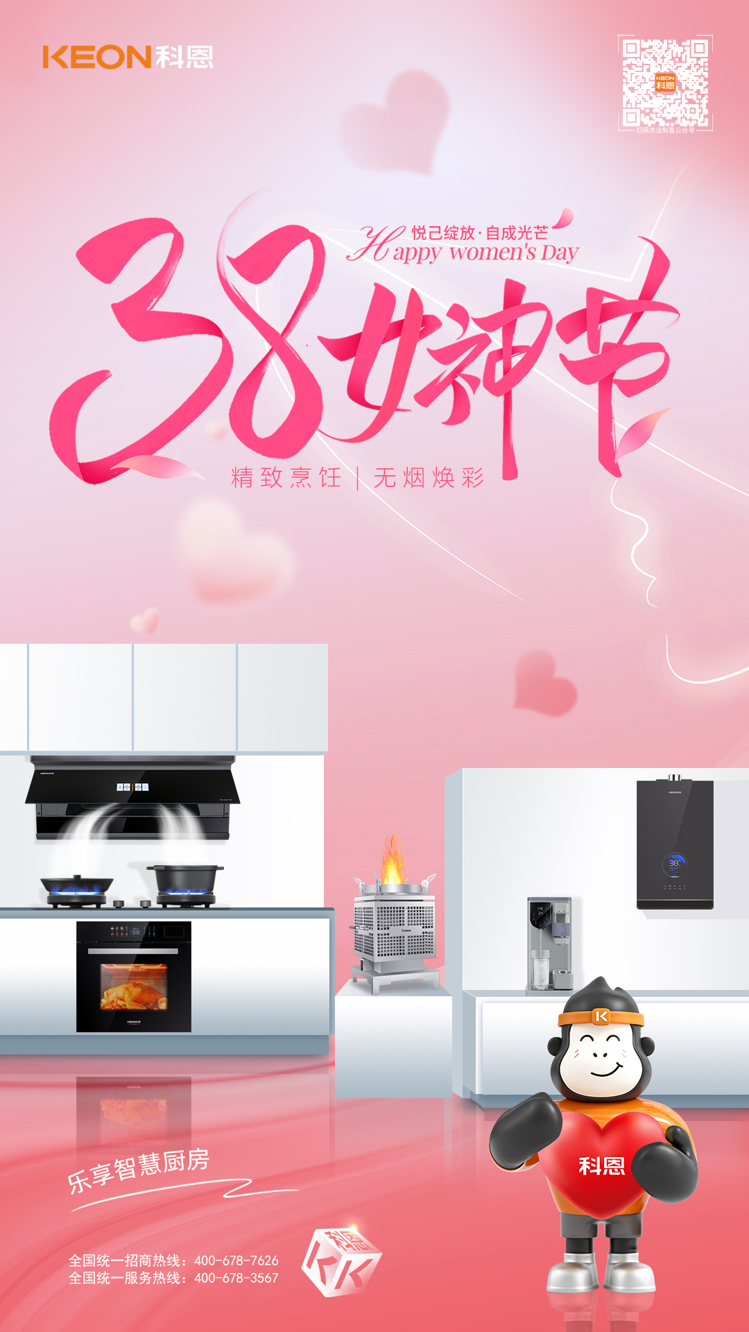 從凈煙護航到火候隨心從恒溫守護到安全無憂科恩以科技為翼,賦能女性品質生活不定義她的角色,只守護她的熱愛不辜負她的付出,只給予貼心呵護這個婦女節,讓科恩與你一起讓廚房成為從容主場,讓生活滿是溫柔光芒愿每一位女性,都能在煙火氣中活成自己喜歡的模樣,自在如風,優雅綻放