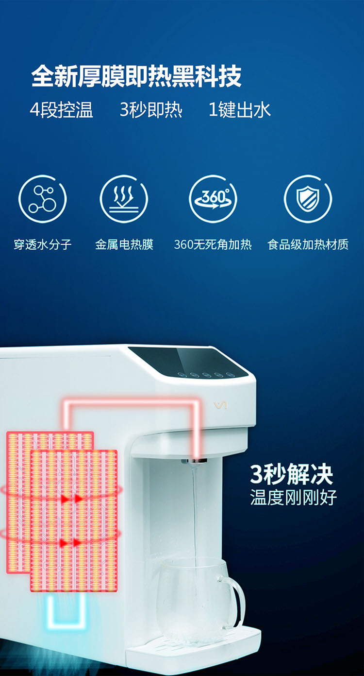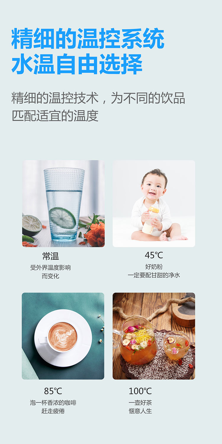 - 3秒速熱,4檔溫控(常溫、泡奶、沖咖啡、泡茶),一鍵操作,方便快捷。