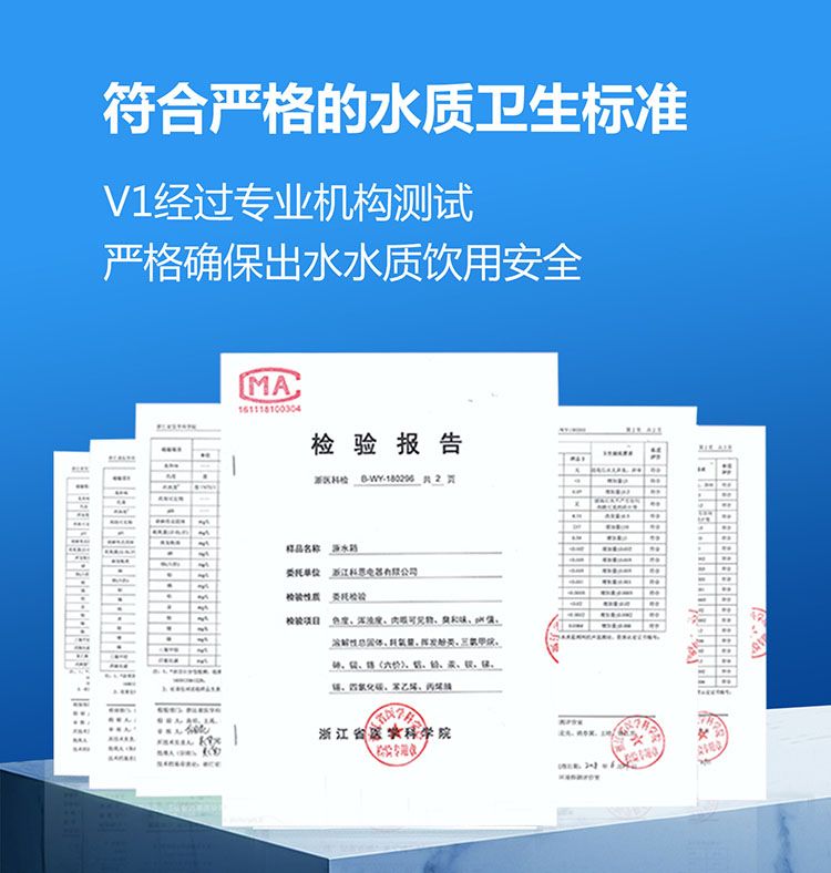 - 通過中國CMA106項(xiàng)水質(zhì)檢測(歐盟48項(xiàng)、美國69項(xiàng))嚴(yán)格標(biāo)準(zhǔn)。