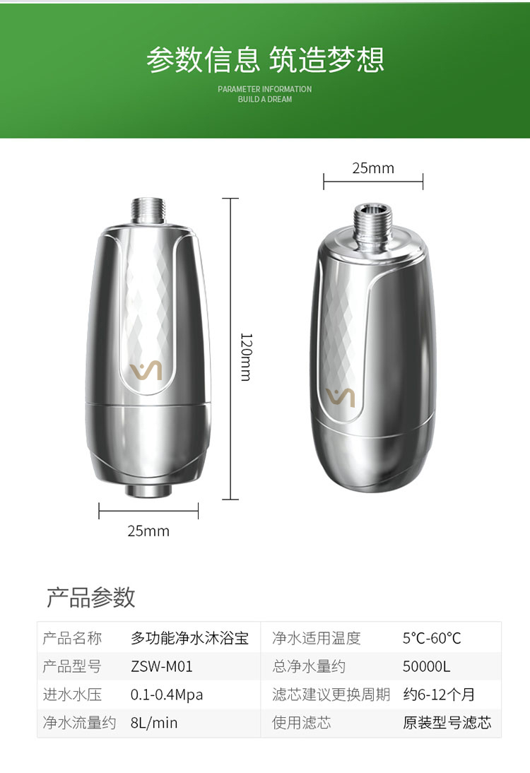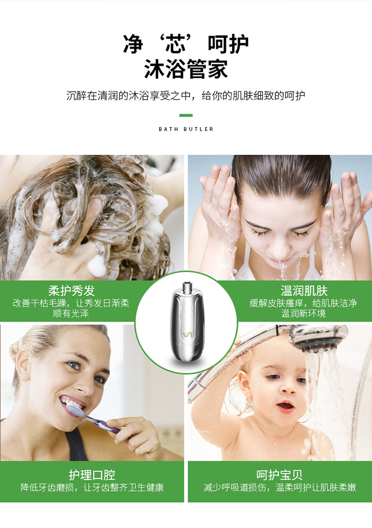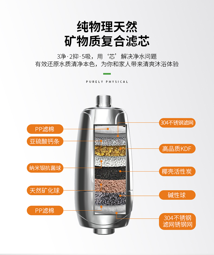 純天然礦物質符合濾芯,給予你接近自然的清爽沐浴。