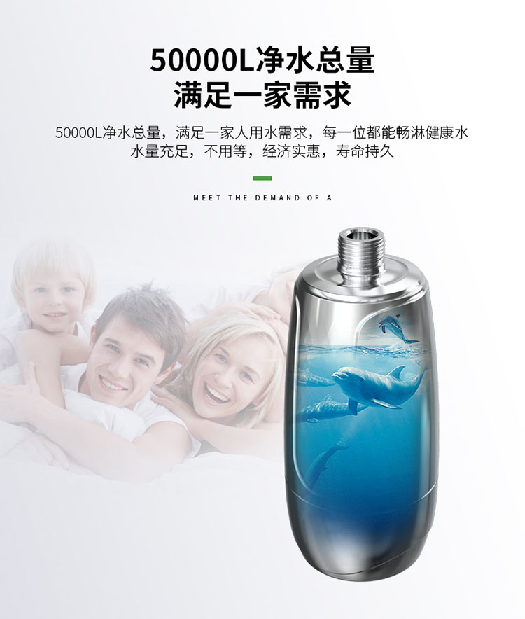 50000L凈水總量,長壽命,滿足一家暢淋需求。