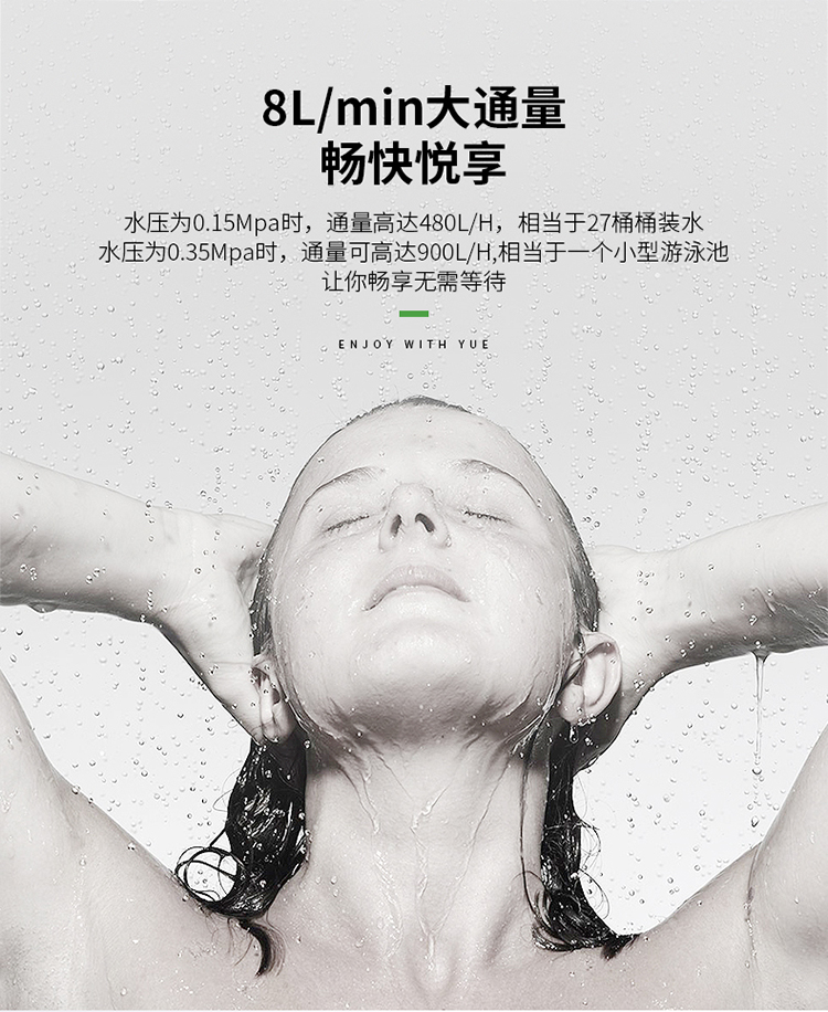 8L/min大通量出水,暢快悅享沐浴的每一分鐘。