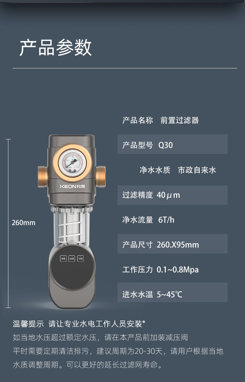 - 6噸/小時大流量,快速過濾,用水無壓力
