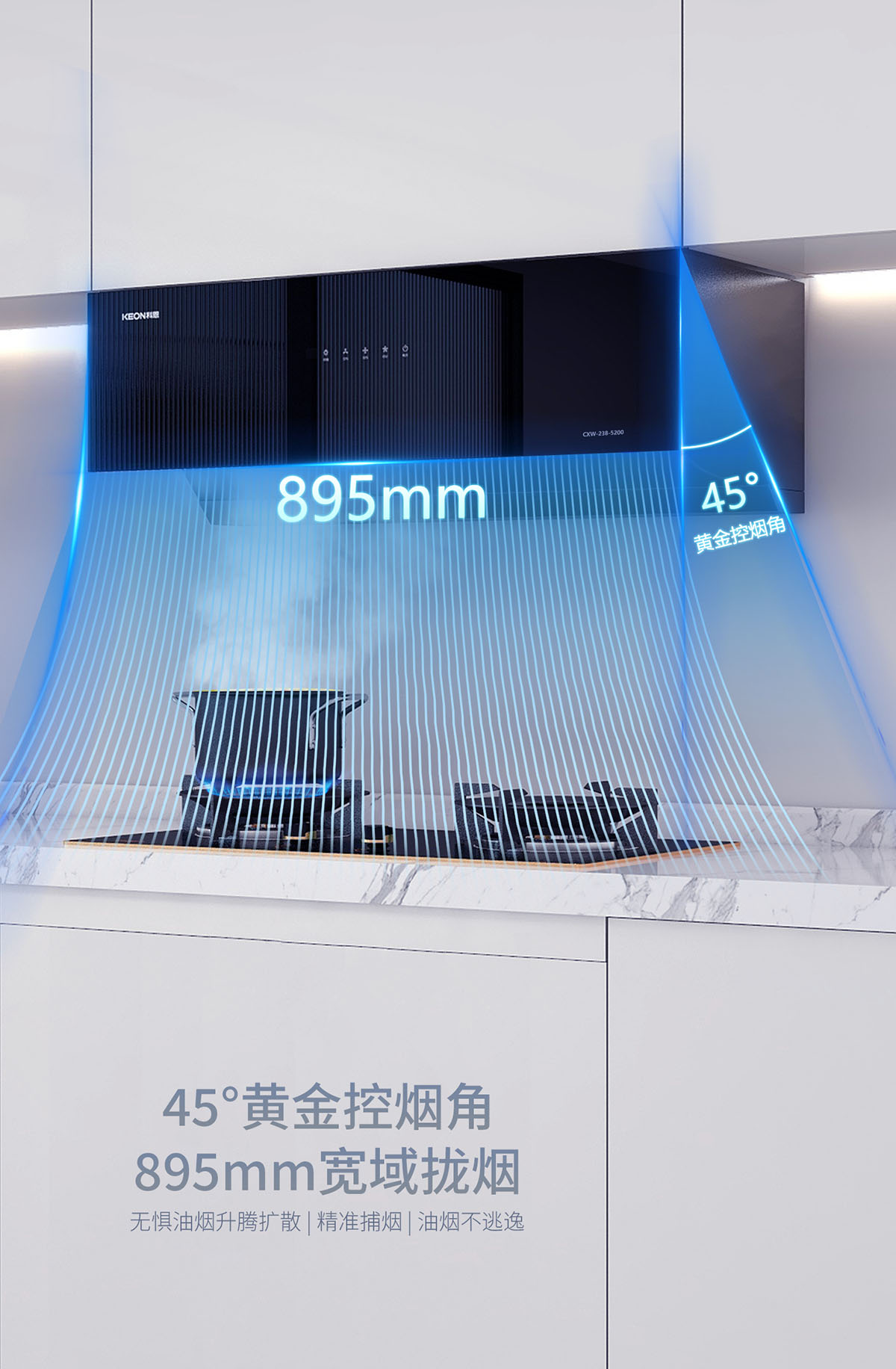 23m³/min颶風吸力,瞬吸油煙,打造無煙廚房