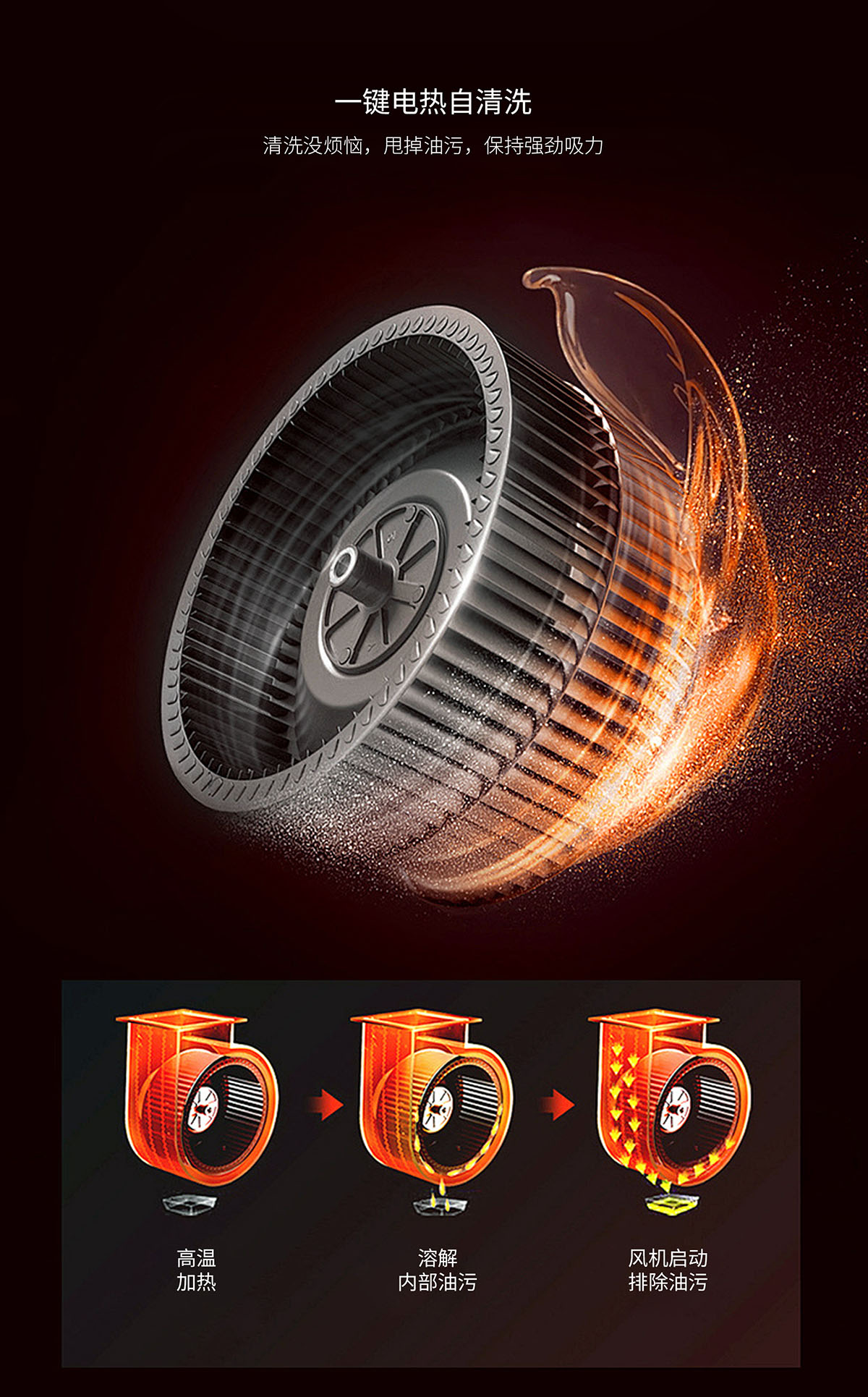 一鍵23.5m³/min爆炒大吸力,無懼重油爆炒