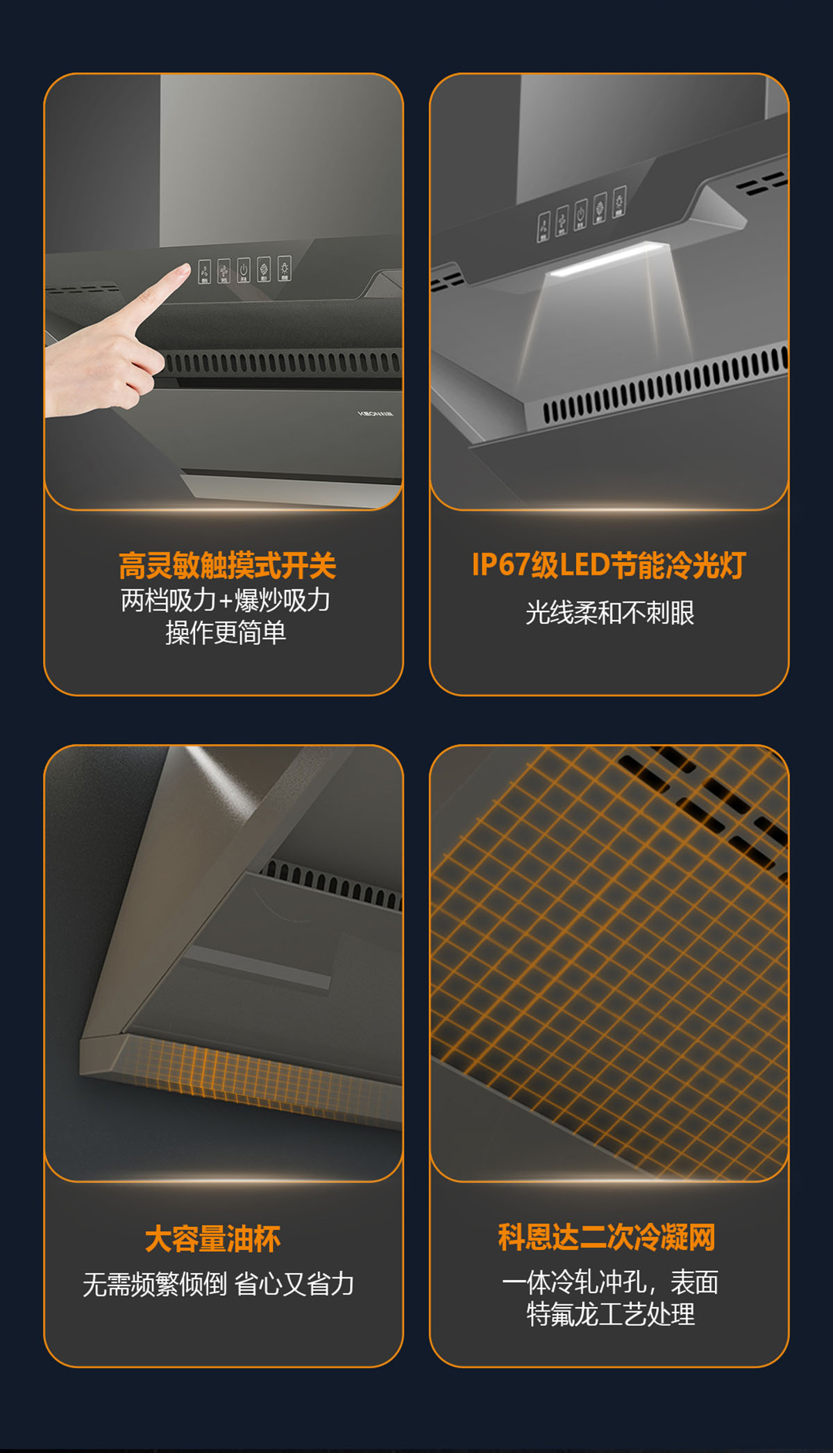 黃金控?zé)焺盼O(shè)計(jì),攏煙面積增加50%,油煙0逃逸