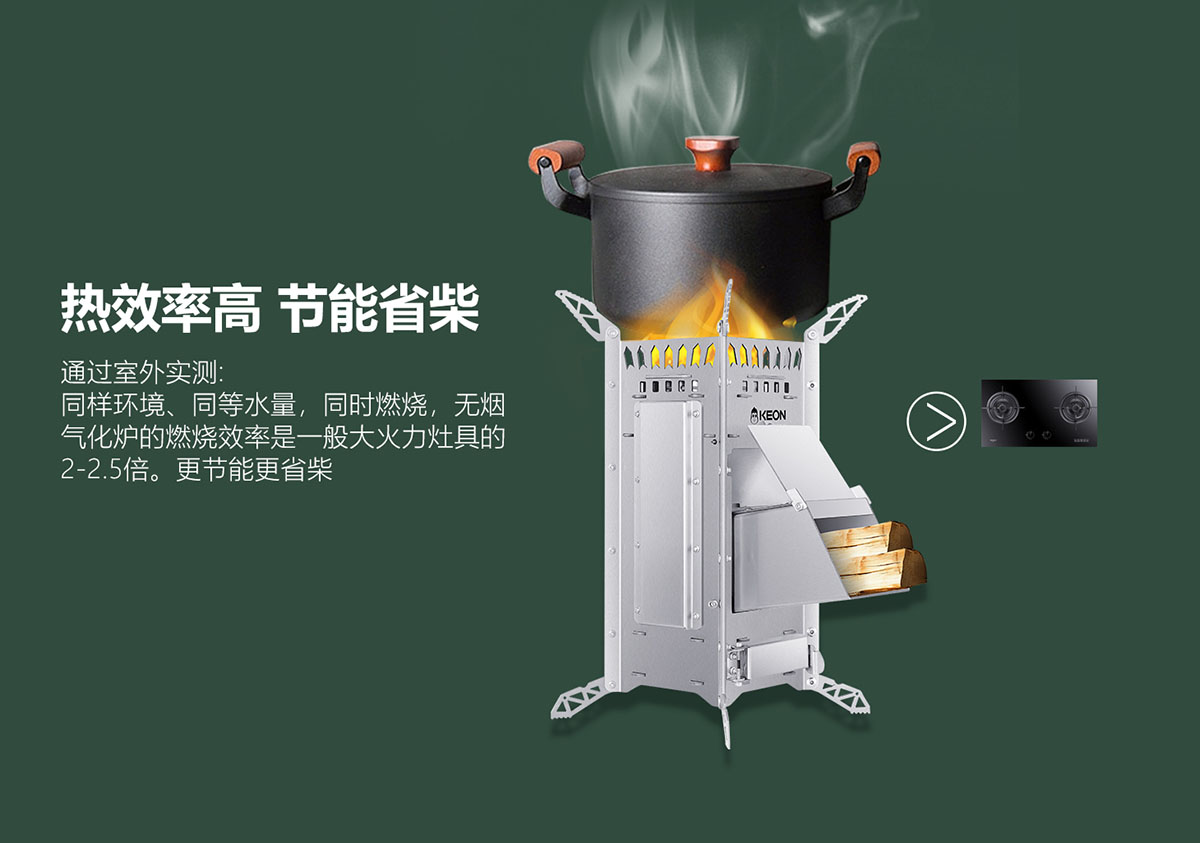 內置可收縮添柴口,下置補氣風門,支持雙模式燃燒