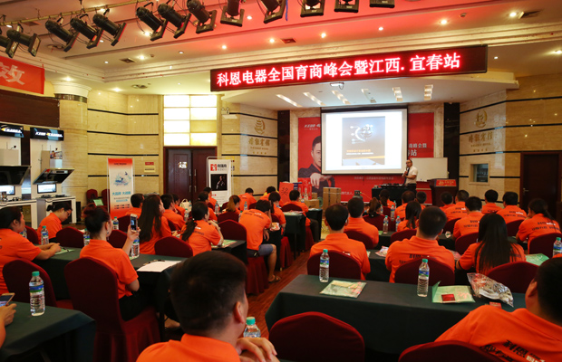 繼科恩電器全國省級聯動大會順利召開,26日,在一片熱烈的掌聲中,科恩電器全國育商峰會暨江西-宜春站活動火熱舉行。在科恩吹響的集結號聲中,來自宜春各地區的經銷商聞聲而動,集結而來。
