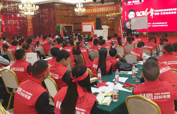 11月8日,科恩電器全國升及連帶暨閩贛大惠戰啟動大會在江西瑞金星洲灣國際酒店隆重舉行,來自福建江西的優秀經銷商,歡聚一堂、共襄盛舉。科恩電器育商團隊聘請資深行業實戰專家全程跟進,切實提高科恩電器在閩贛地區整體銷售水平,實現區域內部專賣店的有效互助共進。